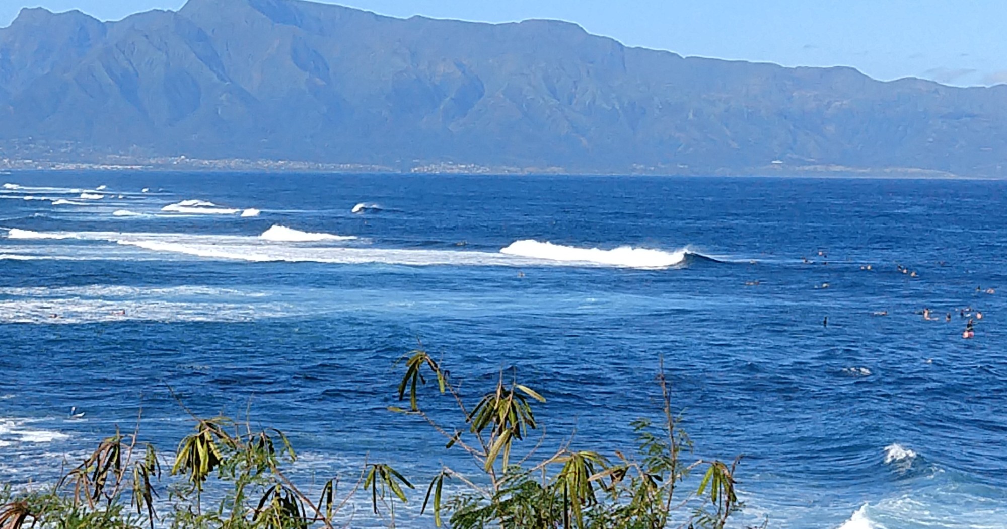If you look closely in the above picture you can see a lot of surfers waiting to catch waves. It didn’t look like a great place to catch waves to me, but right after I took the photo, many of them caught a wave. (Of course, I missed that picture!)