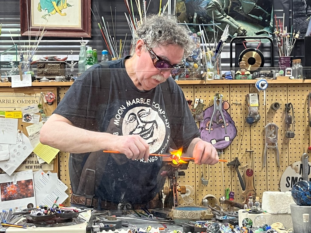 On a recent road trip, we stopped at a marble company in Kansas. It was a fantastic shop full of machine-made marbles, plus the owners were also making speciality marbles by hand.